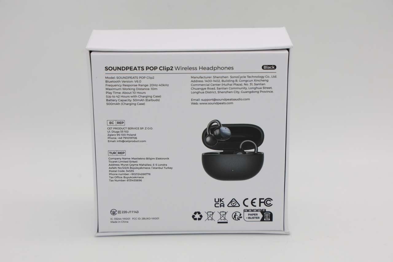 SOUNDPEATS UU2イヤーカフは「UUイヤーカフ」の後継機種で、前日の通り2026年4月20日に発売されたばかりの新製品。元モデル名は「POP Clip2」なのでパッケージにもそう書かれているのだが、日本国内では「UU2イヤーカフ」という名前で販売されている。この辺はちょっとだけややこしい。