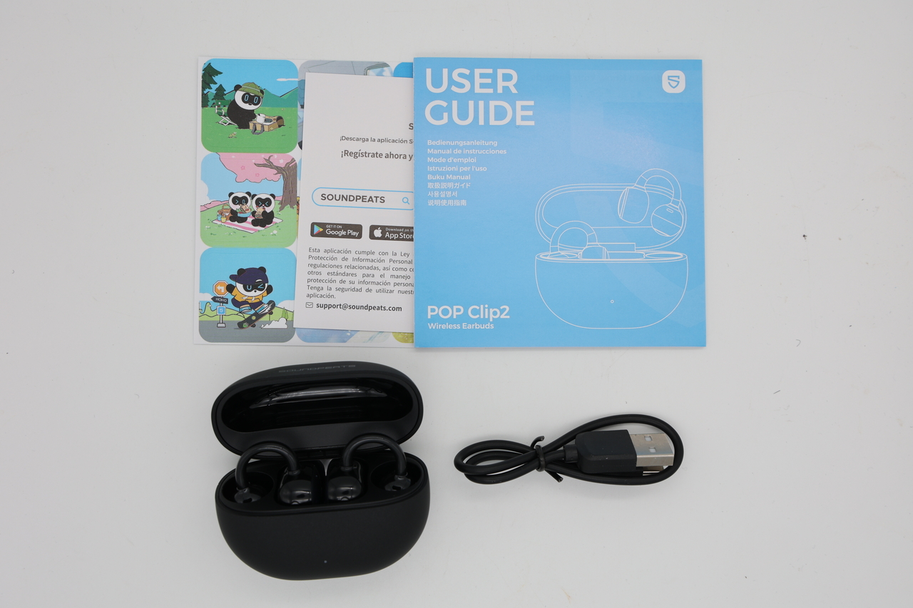 が付属。イヤーカフ型故にイヤーピースなどは付属しない。専用アプリ「SOUNDPEATS」をスマートフォンにインストールすると各種設定をすることが可能。なぜかAndroid版もApple版も死ぬほどアプリのレビュー評価が低い。