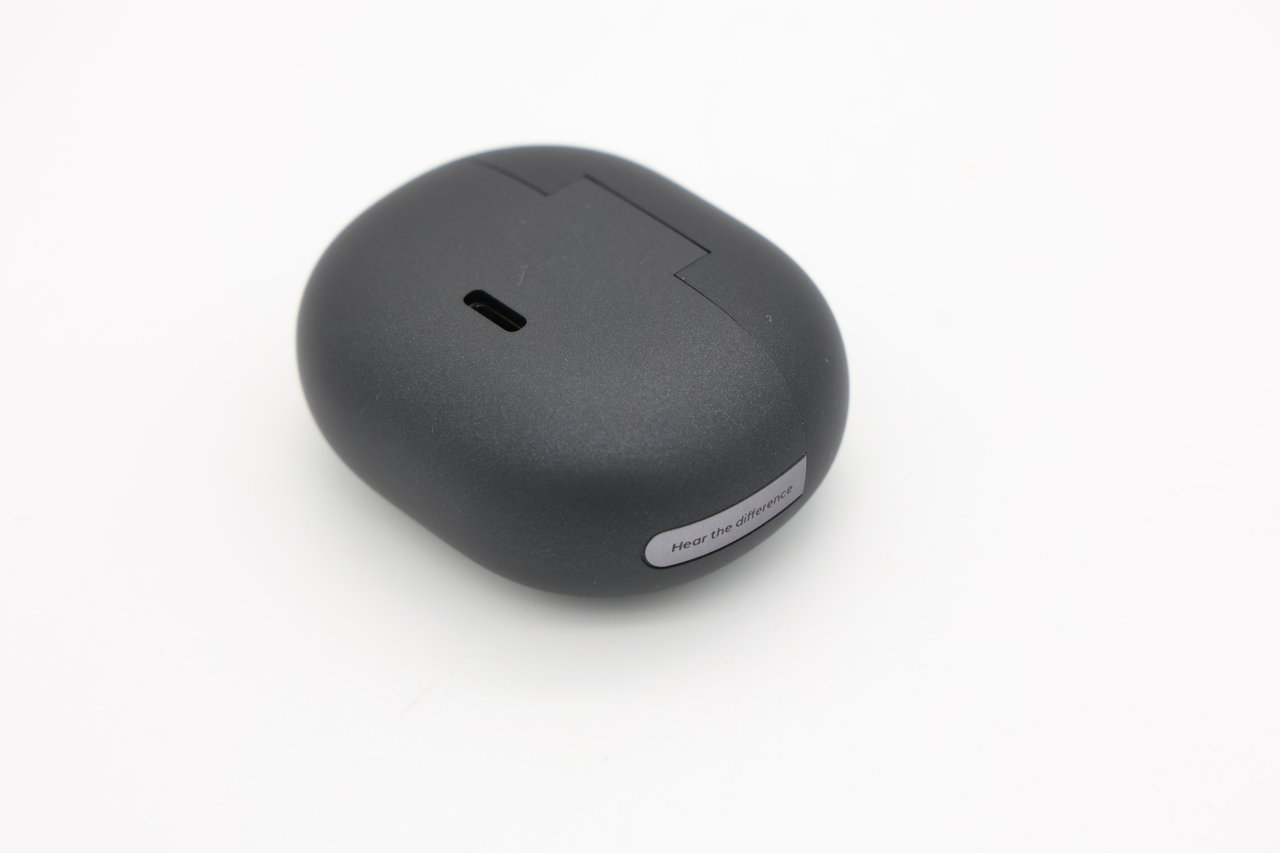 裏面にはUSB TypeCの充電ポートが備わる。リセットボタンと反対側にはSOUNDPEATSのキャッチコピーである「Hear the difference」が書かれる。