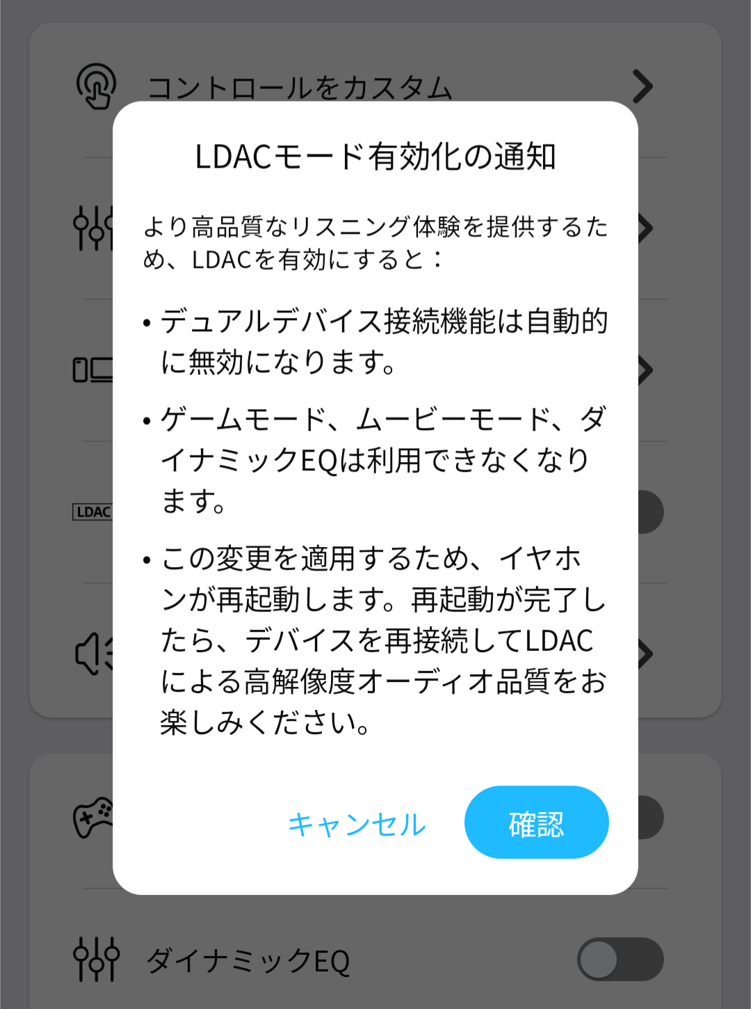 また前述の通りLDACコーデックをオンにするといくつかの機能が無効になる。やっぱりApt-Xに対応してほしい。